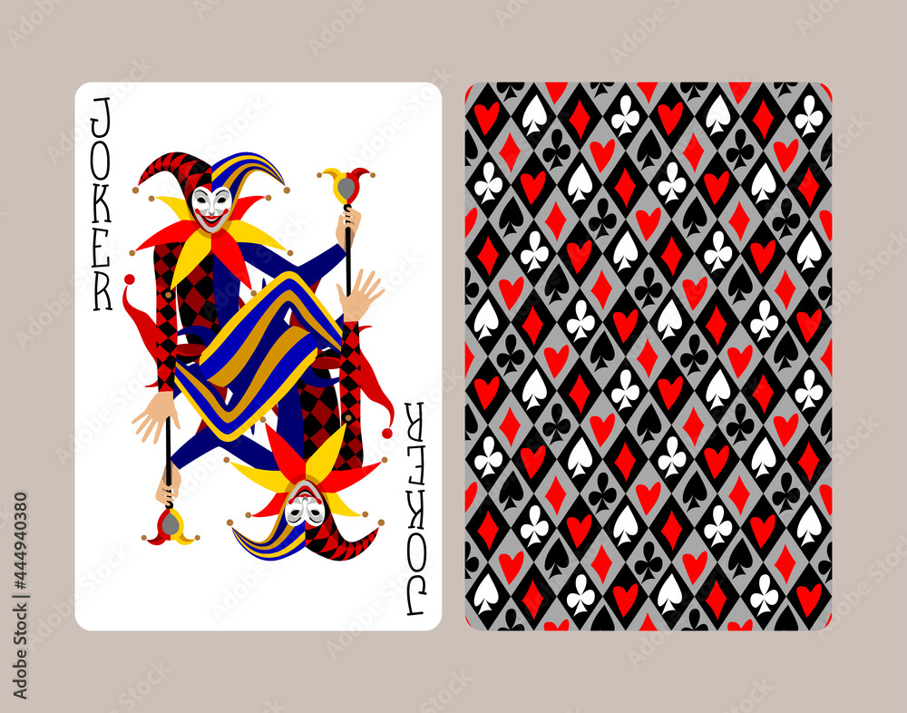 Joker playing card and back in flat style Stock Vector Adobe Stock