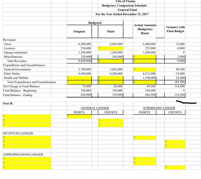 Solved City of Vienna Budgetary Comparison Schedule General