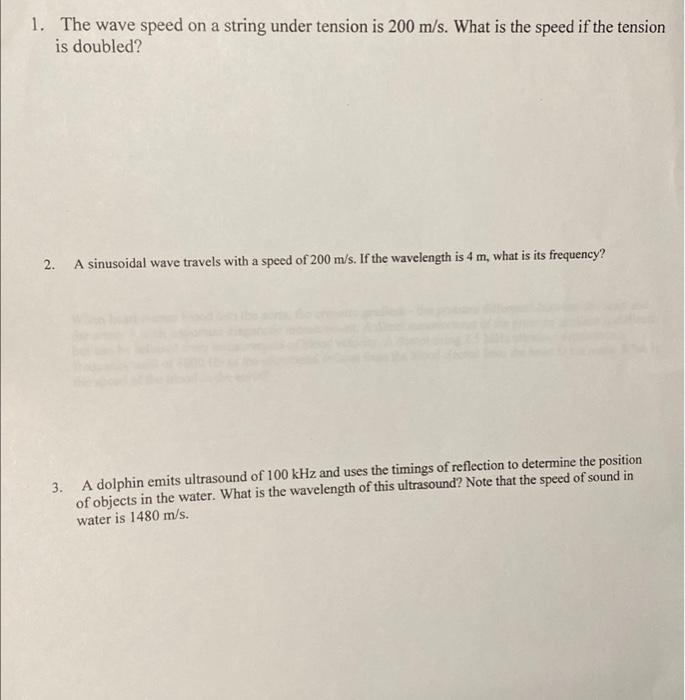Solved 1. The wave speed on a string under tension is 200