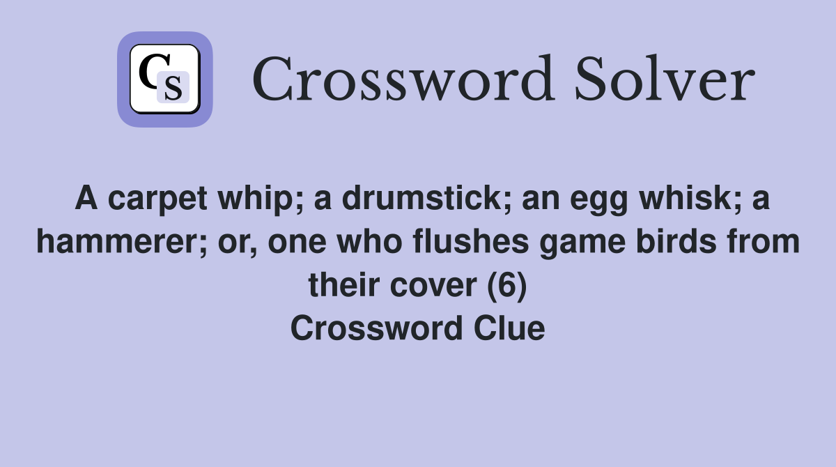 A carpet whip; a drumstick; an egg whisk; a hammerer; or, one who