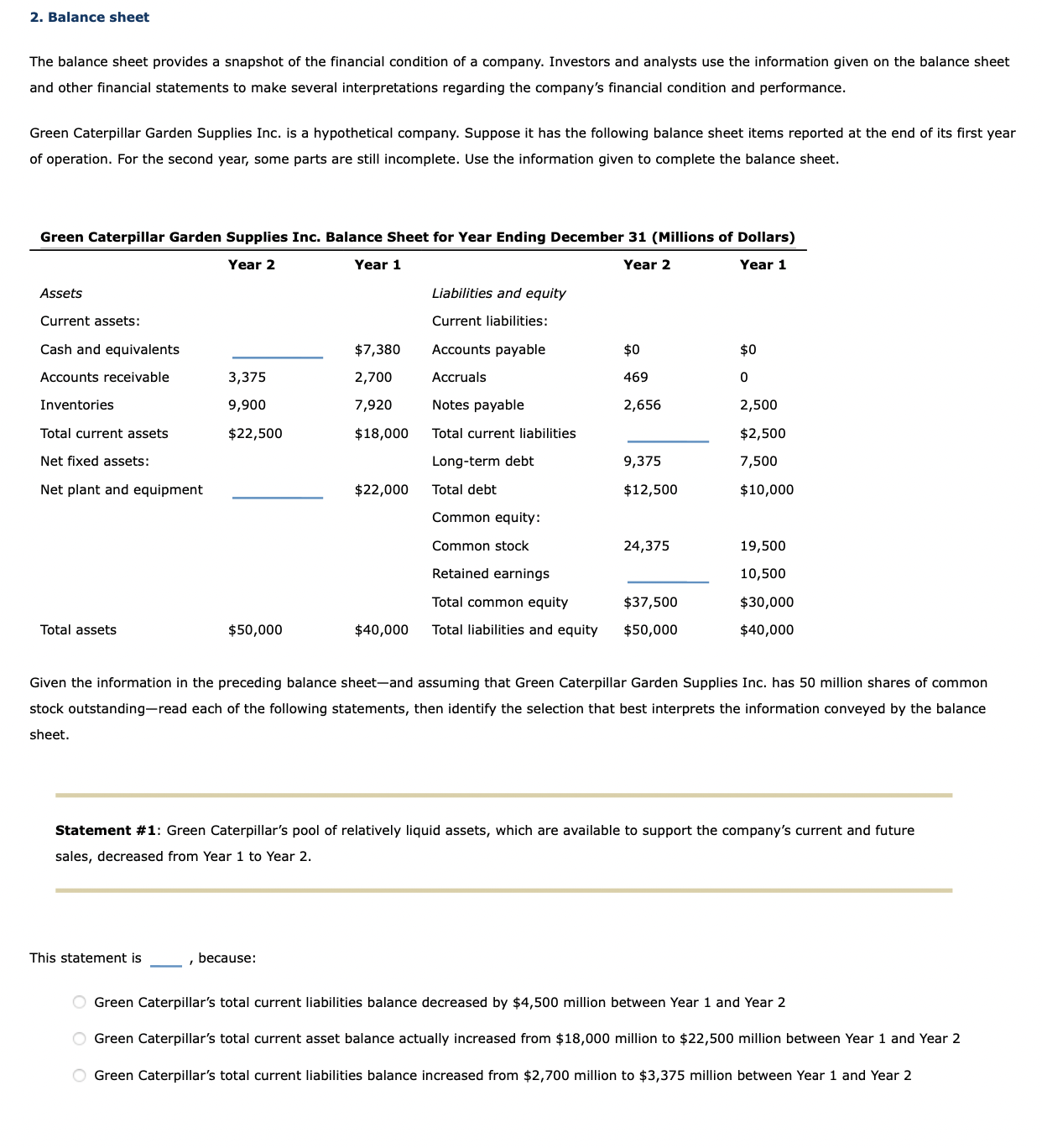 Solved 2. Balance sheet The balance sheet provides a
