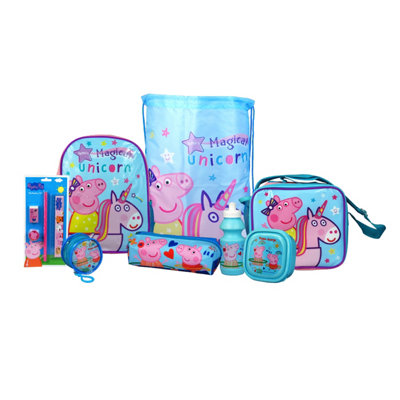 Peppa Pig Unicorn Bag Girls 4 piece backpack set | kids pink rucksack bundle with school bag, pencil case, lunch bag & water bottle. Price and other details may vary based on product size and colour. peppa pig tote, favorite character, themed bag. Girls 4 piece backpack set | kids pink rucksack bundle with school bag, pencil case, lunch bag & water bottle. dive into the world of peppa pig and create a memorable celebration for your child with our charming and delightful party essentials.