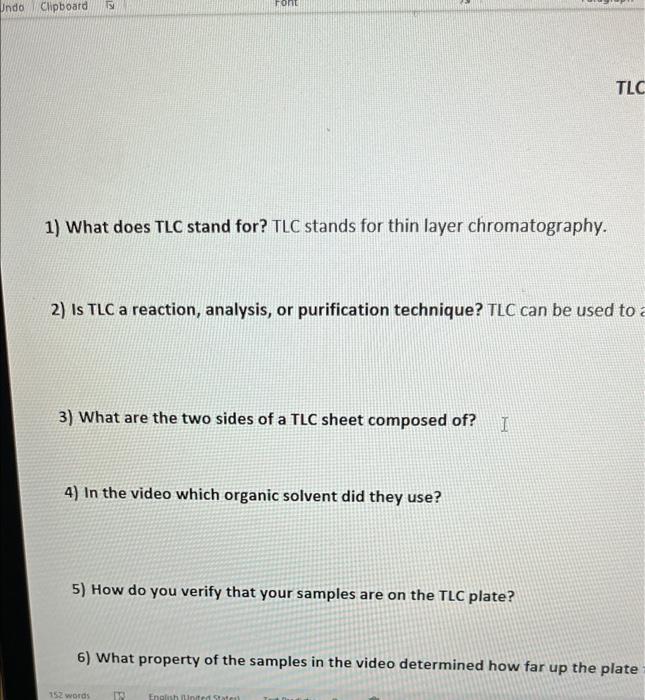 Solved 12 Font Undo Clipboard TLC 1) What does TLC stand