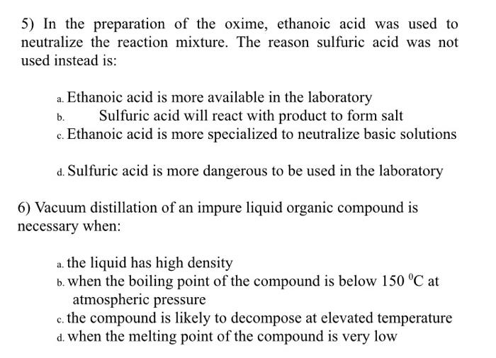 Solved 5) In the preparation of the oxime, ethanoic acid was