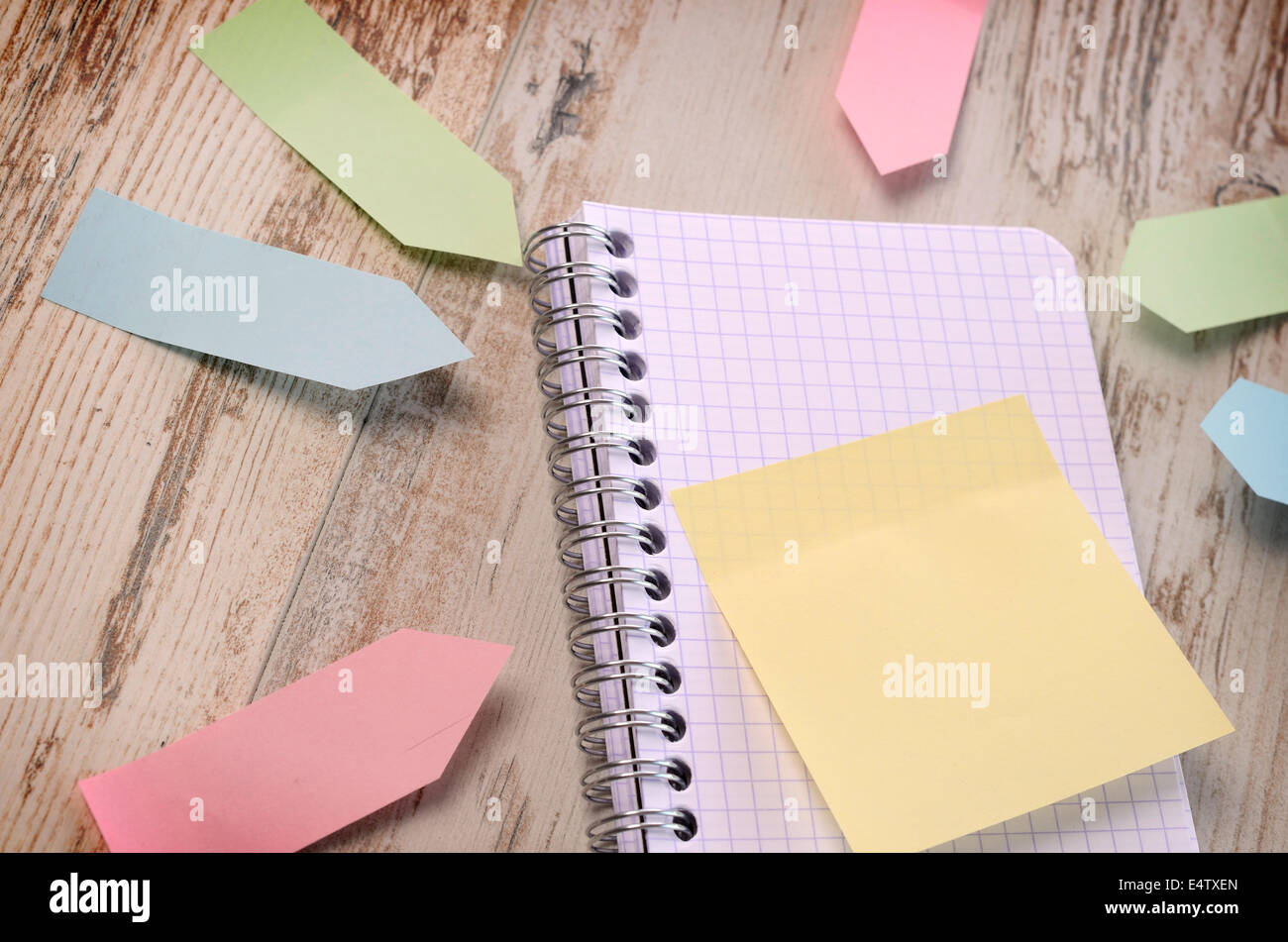 Sticky notes on a wooden table Stockfoto, Lizenzfreies Bild 71847741