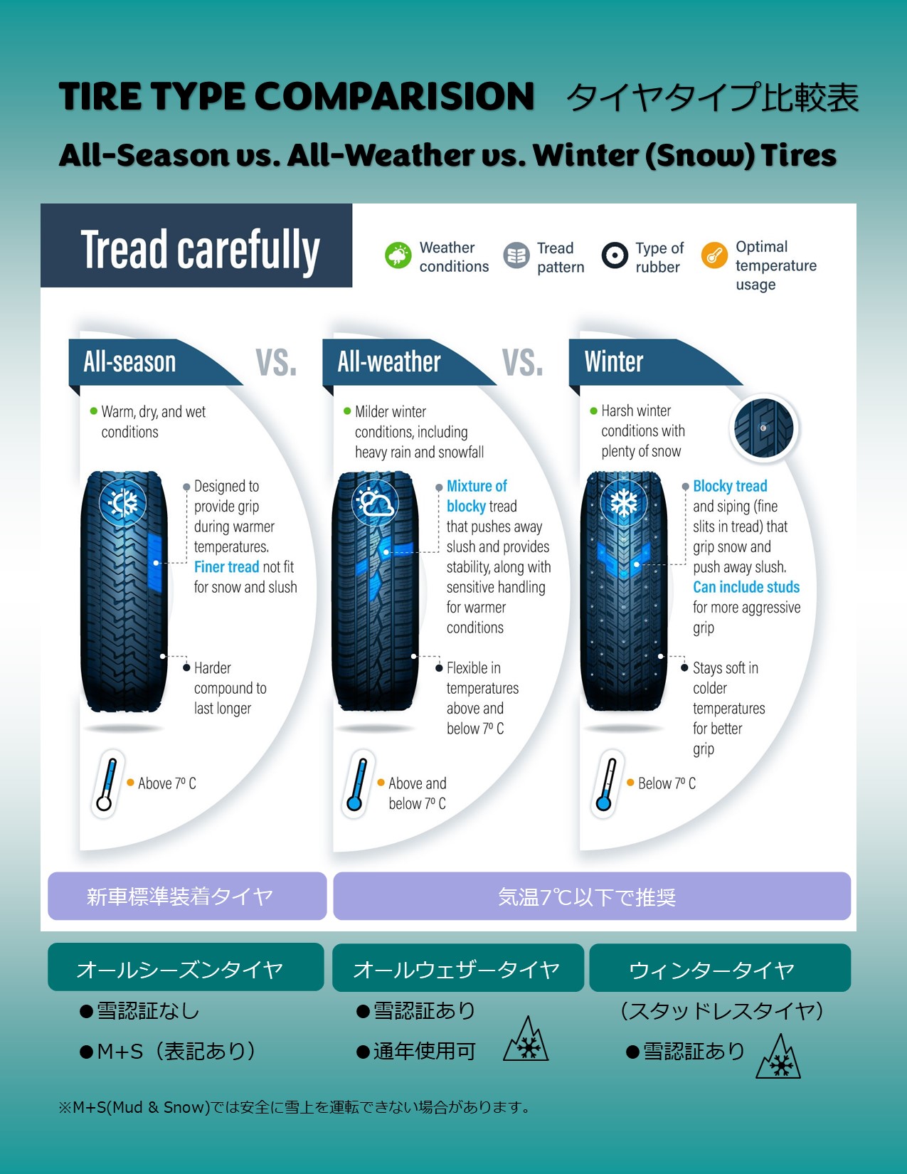 タイヤの種類について カナダ バンクーバー中古車販売 買取査定:ニッポンオートセンター