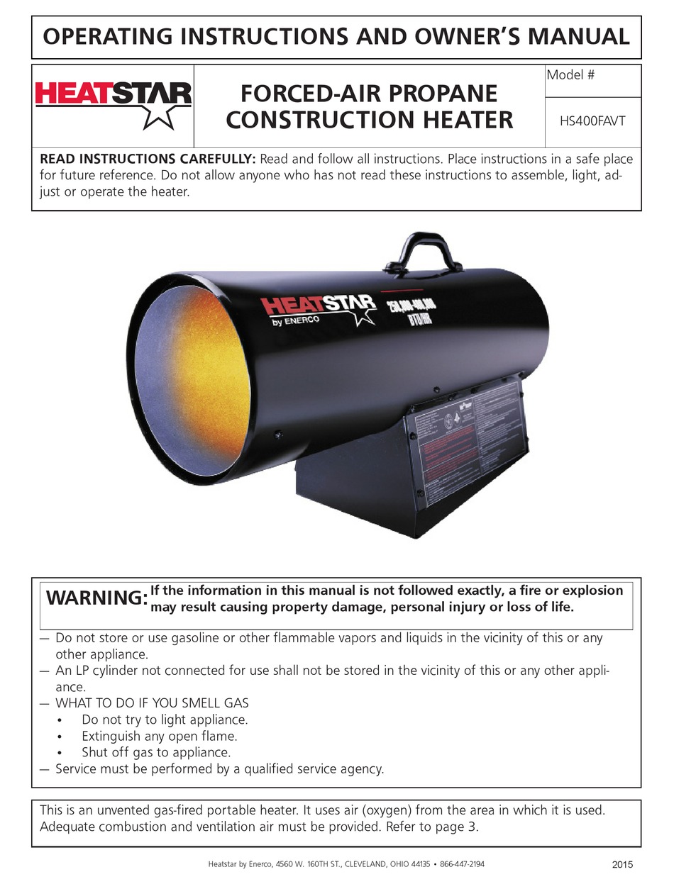 HEATSTAR HS400FAVT OPERATING INSTRUCTIONS AND OWNER'S MANUAL Pdf