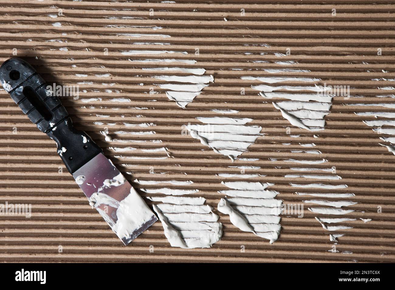 Repair backdrop. Spatula with plaster on cardboard Stock Photo Alamy