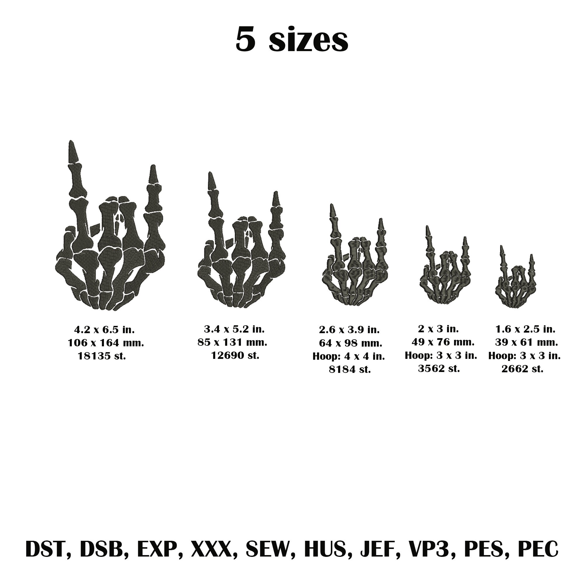 Skeleton Rock Horns Embroidery Skeleton Hand Embroidery Design Etsy