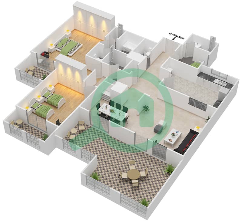 Floor plans for Type E FLOOR 3 2bedroom Apartments in Al Badia