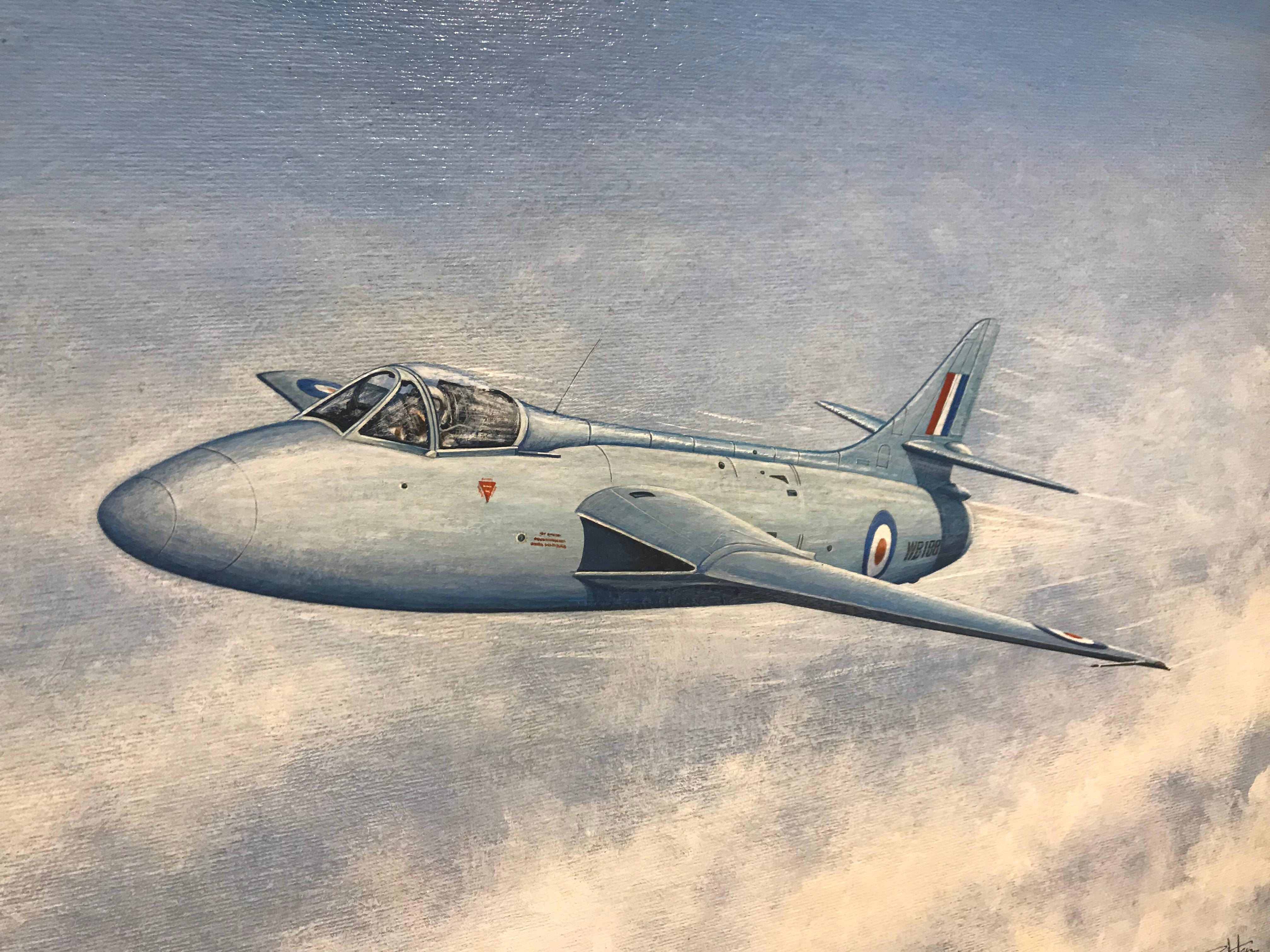 Painting of a RAF Hawker Hunter Jet 'WB188' For Sale at 1stDibs