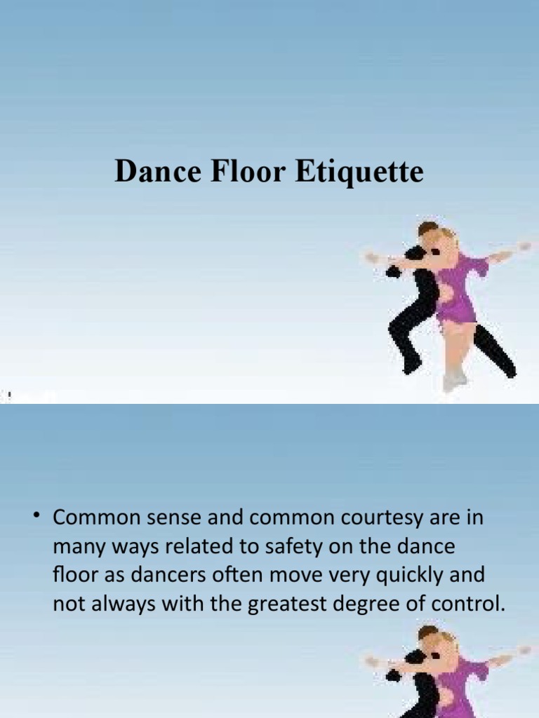PPT Dance Floor Etiquette PowerPoint Presentation, free download ID Dance Floor Etiquette Its always good to practice certain etiquette while on a dance floor. Book a free strategy call for my online. Dance etiquette is the unwritten (hey… and sometimes written!) set of rules and behaviors that help to maintain a respectful,. A list of dance floor tips. Dances that move in a continuous forward movement. Never come onto the dance floor. Dance Floor Etiquette.