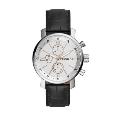 Rhett Chronograph Black Leather Watch Fossil