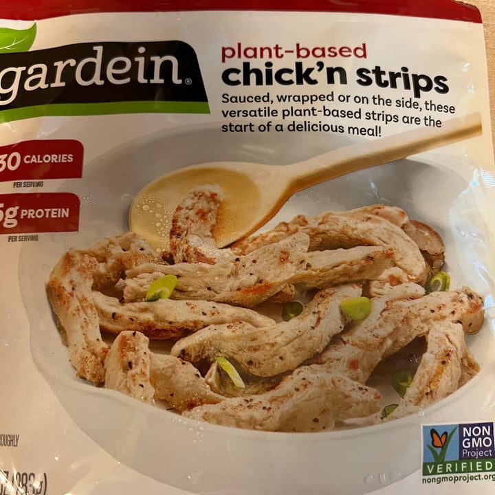 To Daisy's Reviews gardein Meatless Chicken Review Gardein Chicken Strips Calories 1 serving of gardein chick'n strips (no sauce ) contains 120 calories. 13% fat, 12% carbs, 75% protein. There are 100 calories in 1/3 container (67 g) of gardein chick'n strips.: There’s no guilt with these easy, delicious, and crispy chick’n strips. There are 130 calories in 6 pieces (90 g) of gardein meatless chick'n strips. Net carbs are calculated. Gardein Chicken Strips Calories.