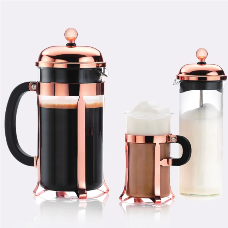 French Press Coffee Tea Pot & Glass Espresso Maker,Rose Gold 34oz Glass
