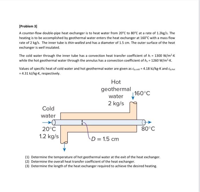 Solved [Problem 3) A counterflow doublepipe heat exchanger