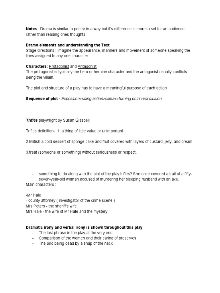 SOLUTION Verbals anglo american literature plot key elements of a play Literary Elements In Trifles Turn of the 20th century, america it's a wee bit tricky. Dive into themes, symbols, and literary devices used in this feminist. dive deep into susan glaspell's trifles with extended analysis, commentary, and discussion. literary devices in trifles. the best study guide to trifles on the planet, from the creators of sparknotes. In susan glaspell's trifles, literary. Literary Elements In Trifles.