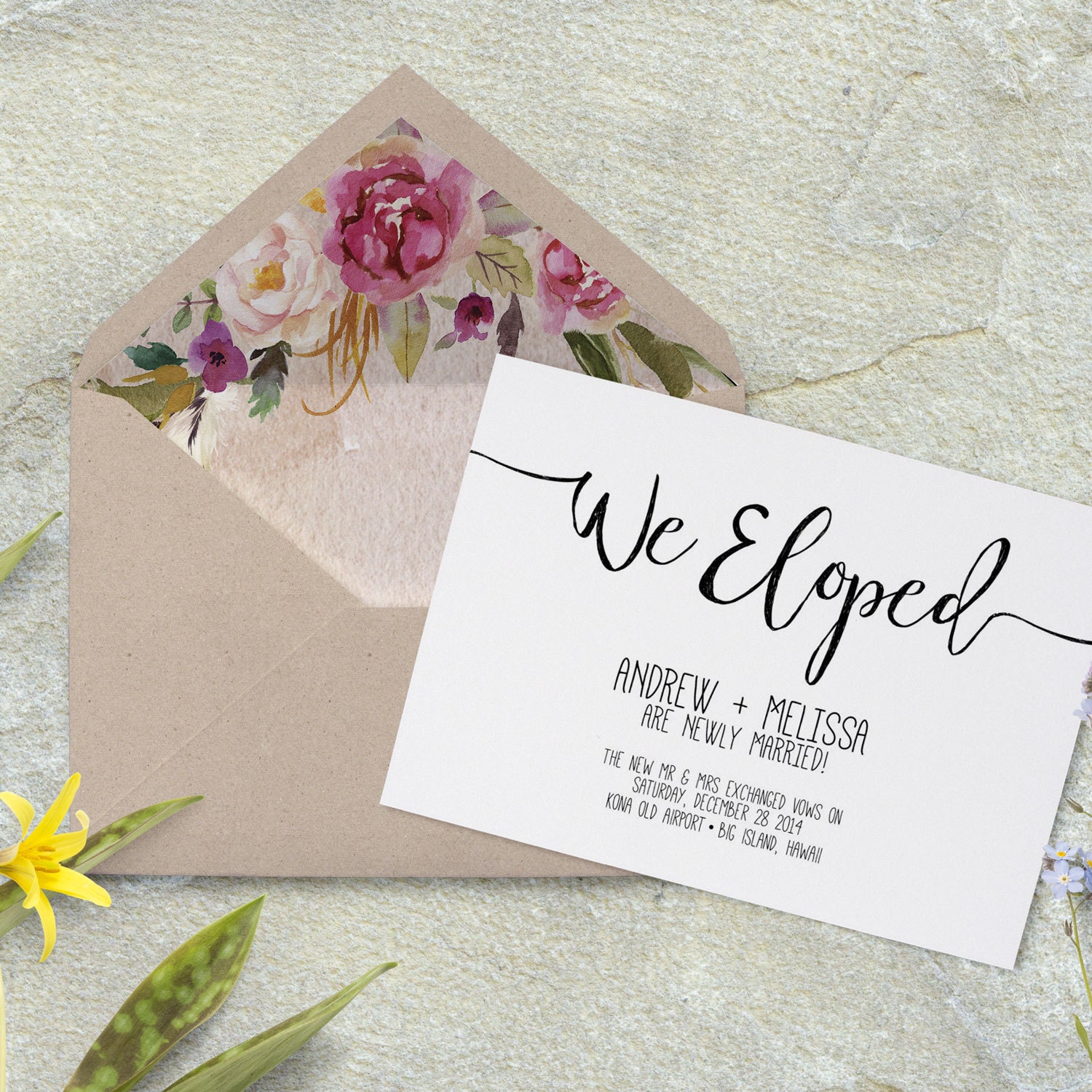 Our Favorite Etsy Elopement Announcements Junebug Weddings Elopement Cards Announcements let guests in on your excitement by providing them with the reason for your elopement in the first. our elopement announcement wording samples below will help you cater your verbiage to whatever your circumstances may be, while still expressing the absolute joy you both feel to be official spouses. elopement announcements are not only a beautiful keepsake. Elopement Cards Announcements.