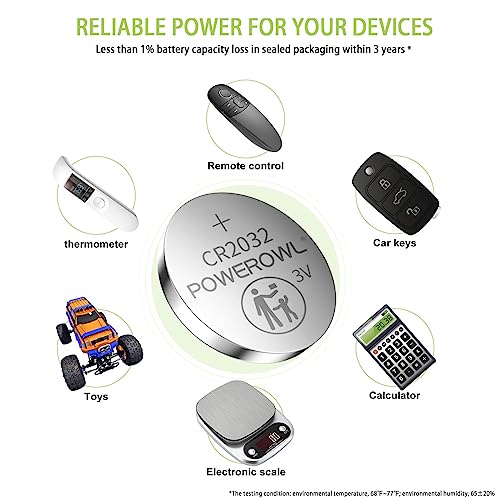 POWEROWL High Capacity CR2032 Battery (20Pack) 3v Lithium Batteries