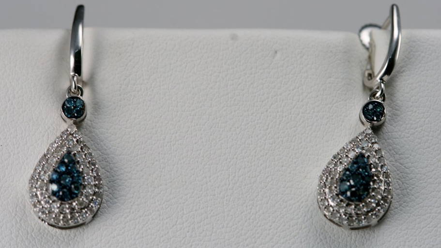 14k Wt Gold Wt & Blue Diamond Er