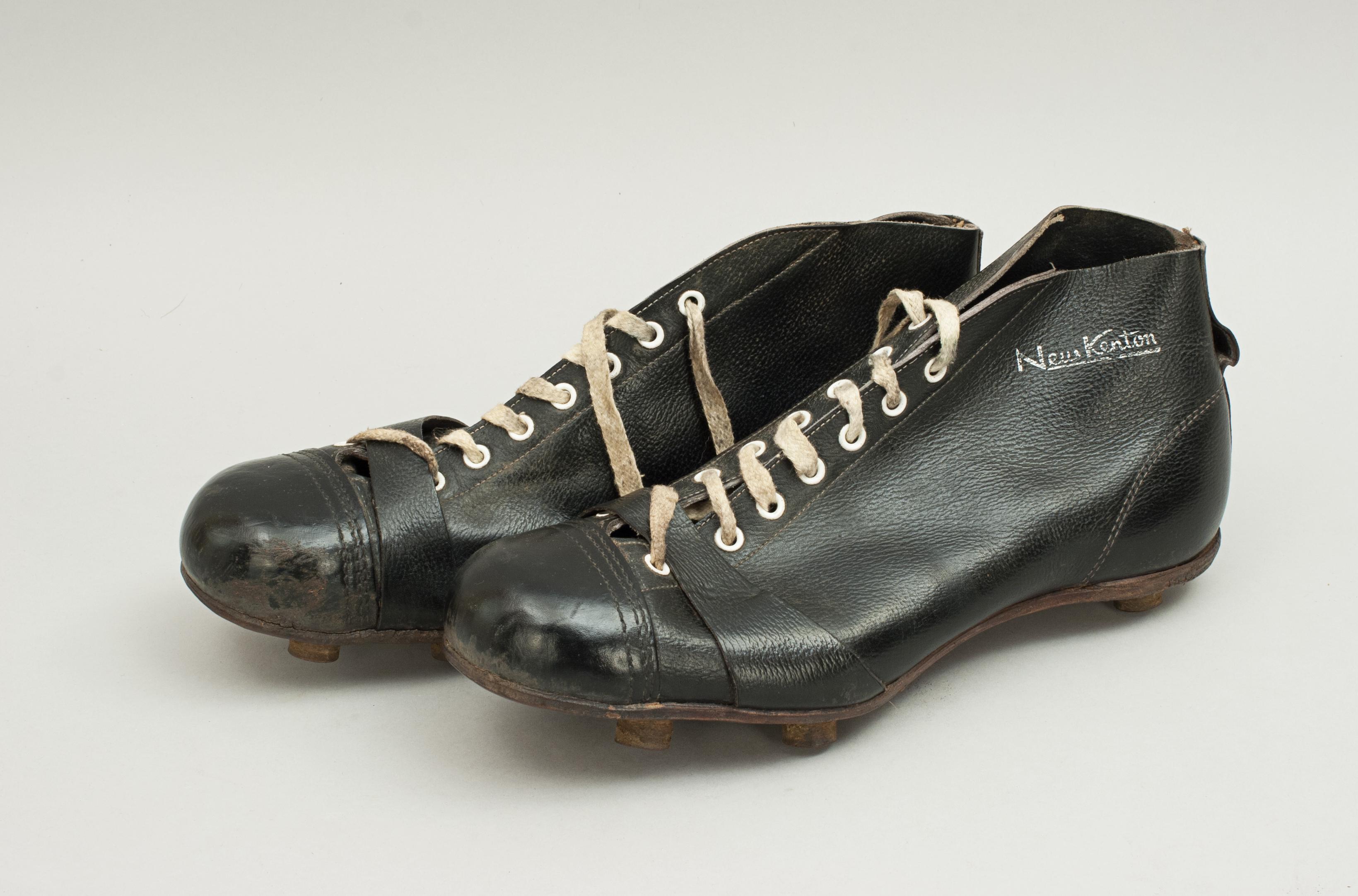 Vintage Leather Football Boots, New Kenton Black Football Boots at