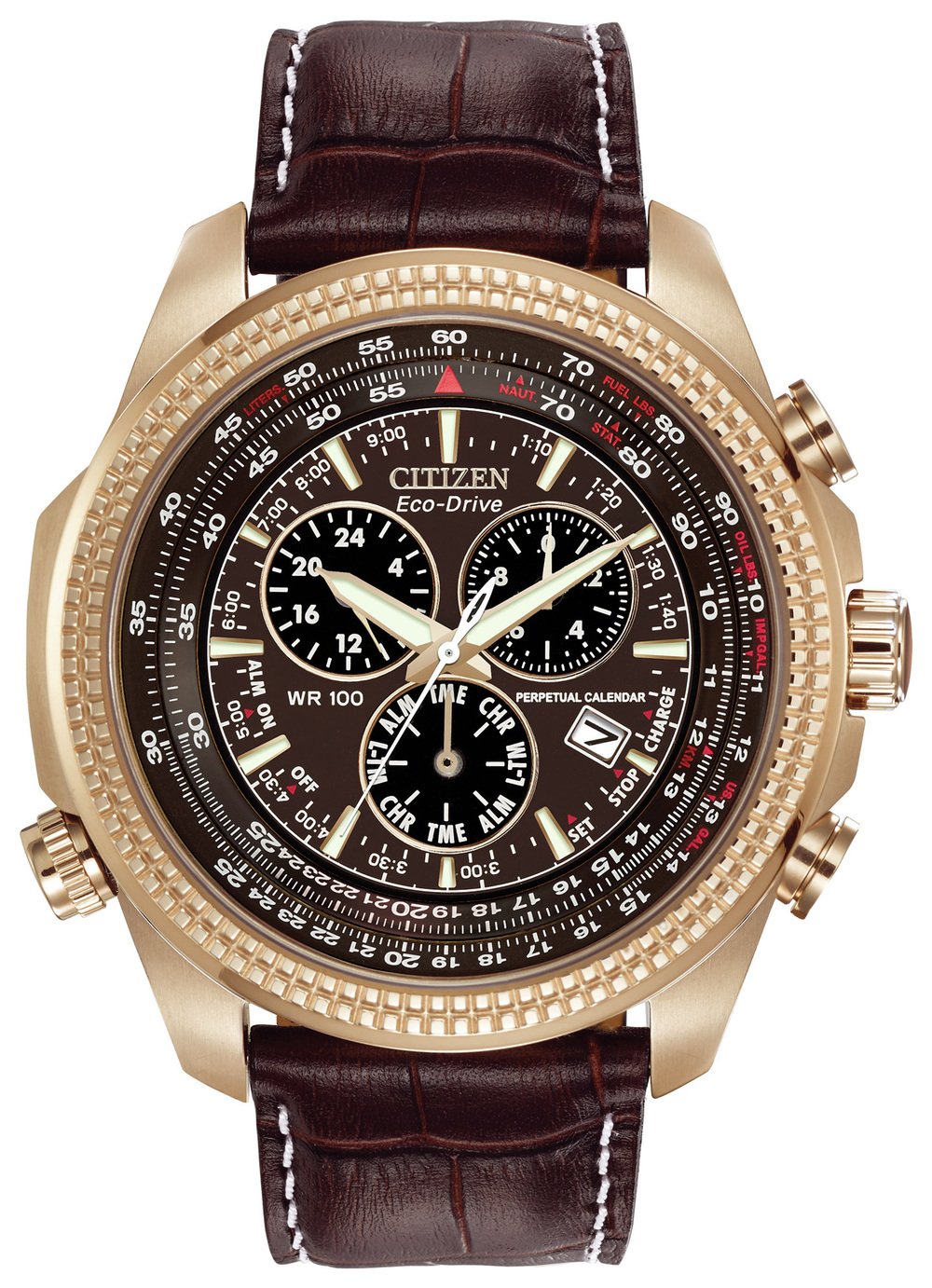 Citizen EcoDrive Mens Chronograph Brown Leather Strap Watch (7905328