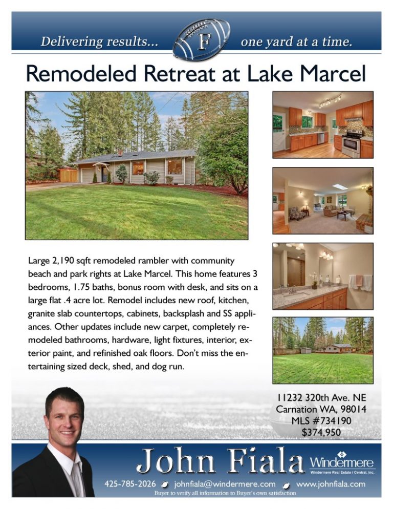 Lake Marcel Home for Sale, Carnation, WA Rambler, 3 bed, Community