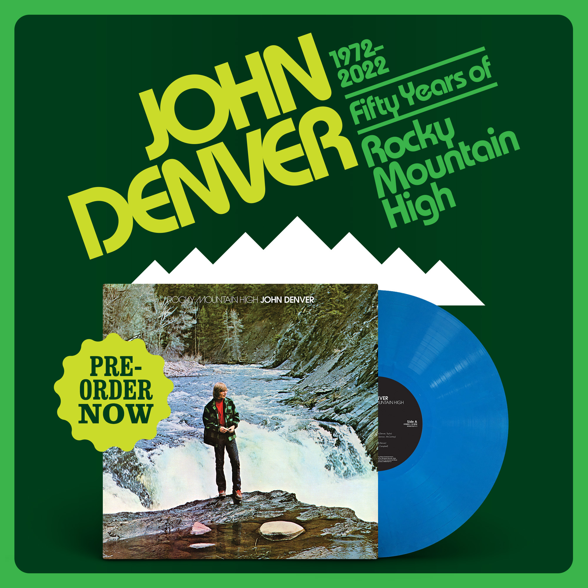 “Rocky Mountain High” 50th Anniversary Blue Vinyl LP Reissue John Denver