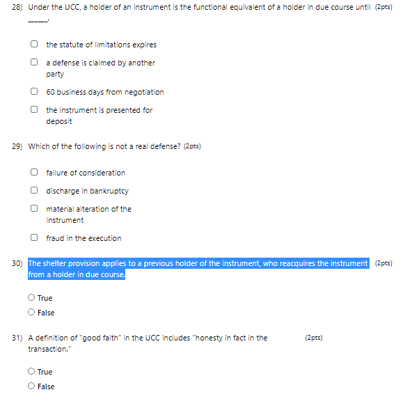 Solved 28) Under the UCC, a holder of an instrument is the