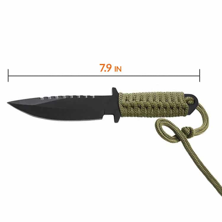 Stainless Steel Survival Knife With Nylon Wrapped Handle Army Green