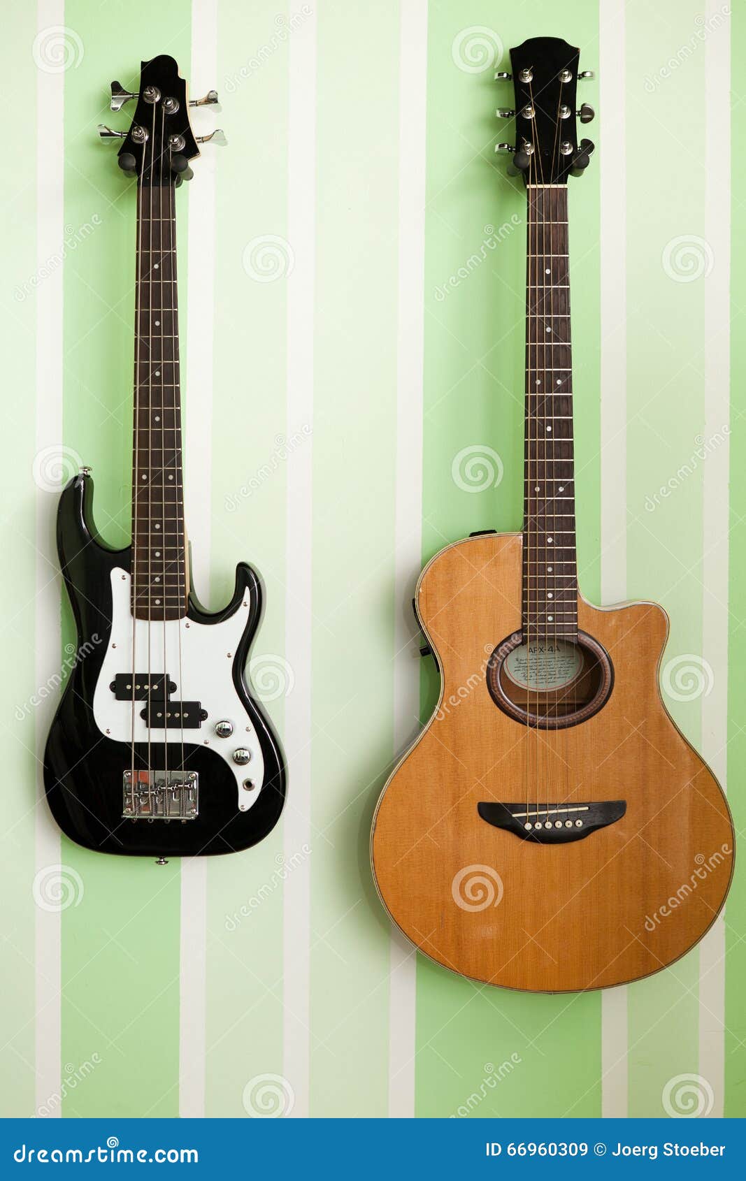 Two guitars on a wall stock image. Image of performance 66960309