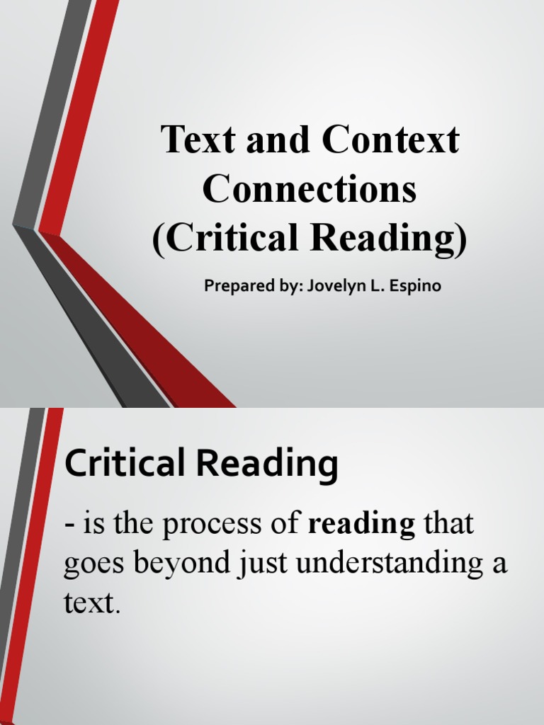 Text and Context Connections (Critical Reading) Prepared By Jovelyn