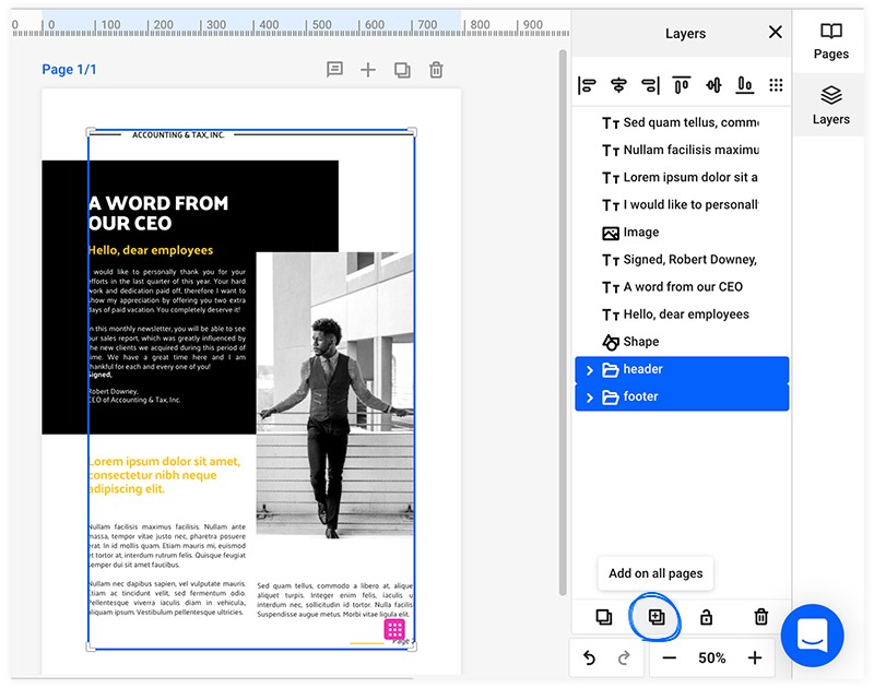 Page headers and footers