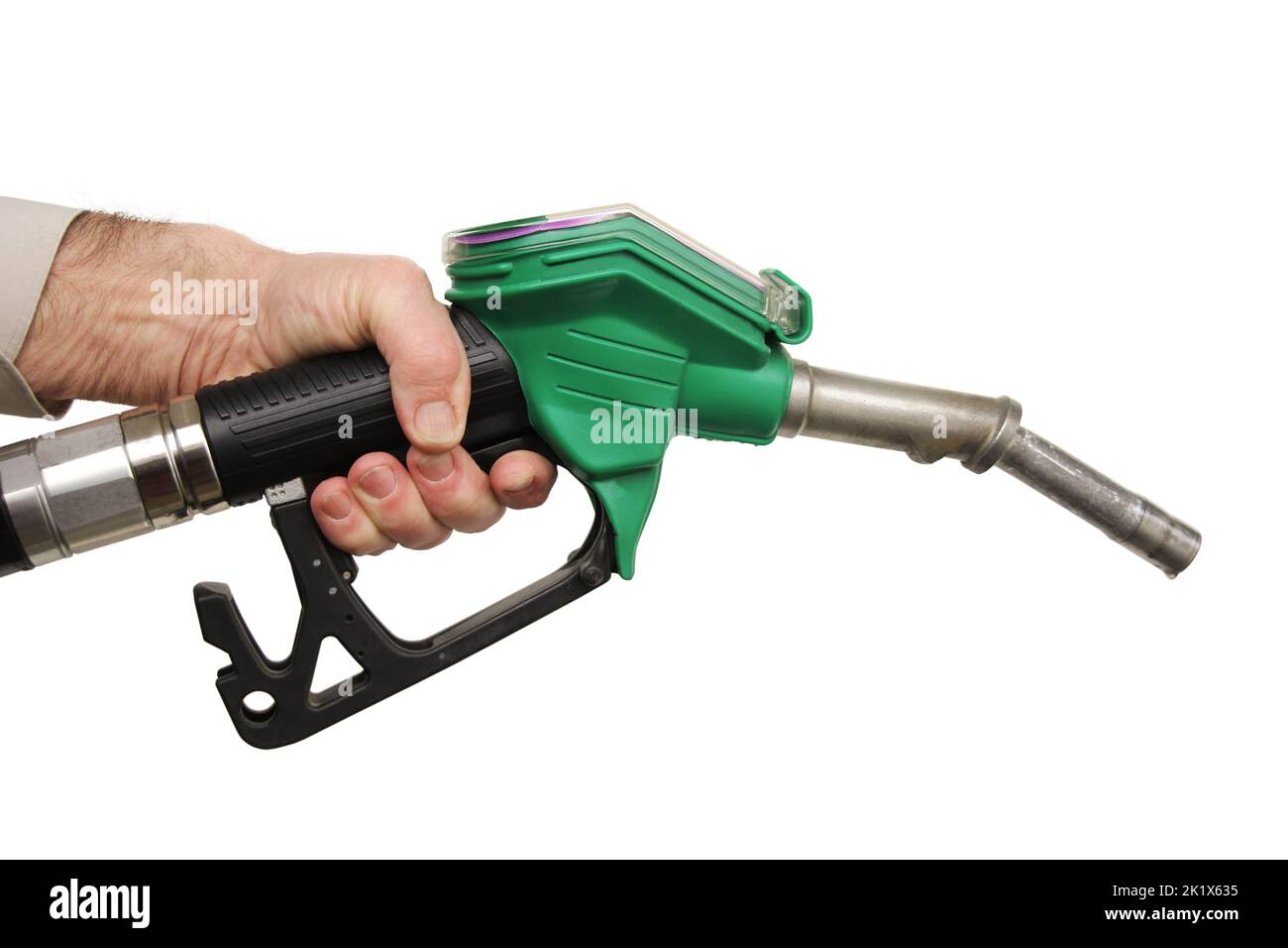 hand holding a petrol pump, isolated Stock Photo Alamy