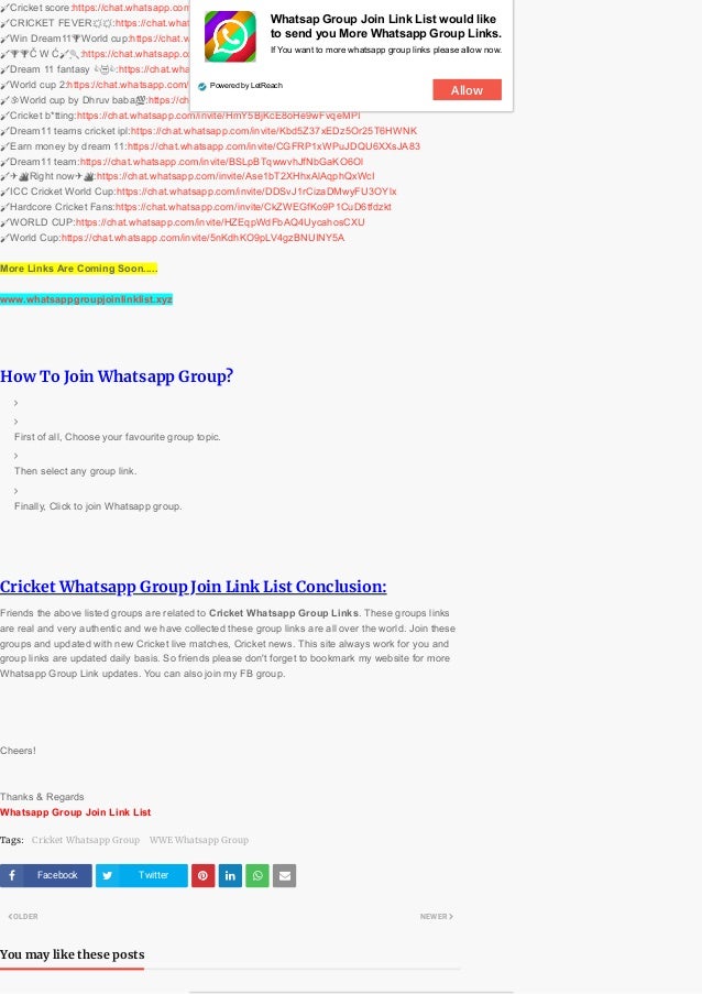 1500+ Active Cricket WhatsApp group links Whatsapp Group Link Cricket in the ipl whatsapp group, you can make friends with the same interests as you have and share your point of view with the other group members. cricket whatsapp group links. we will provide you with all the cricket whatsapp group links that you are searching for, all on a single platform. take your cricket obsession. Whatsapp Group Link Cricket.