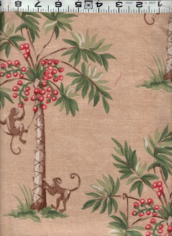 Upholstery Drapery fabric Monkey w Palm Trees camel and