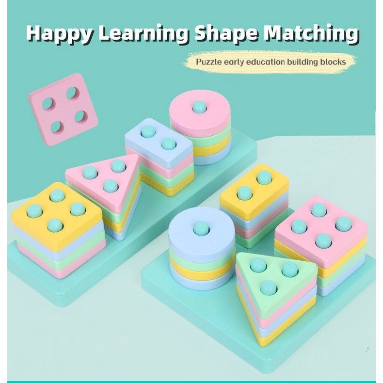 Wooden Toys Building Blocks Shape Puzzle Kids Learning Shopee Malaysia