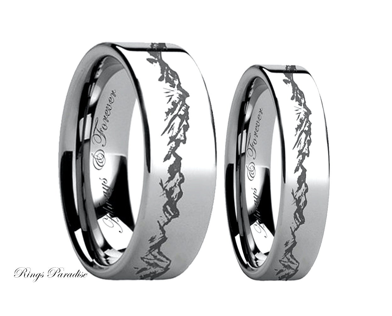 Unique Wedding Bands Couples Rings Mountain Rings Tungsten