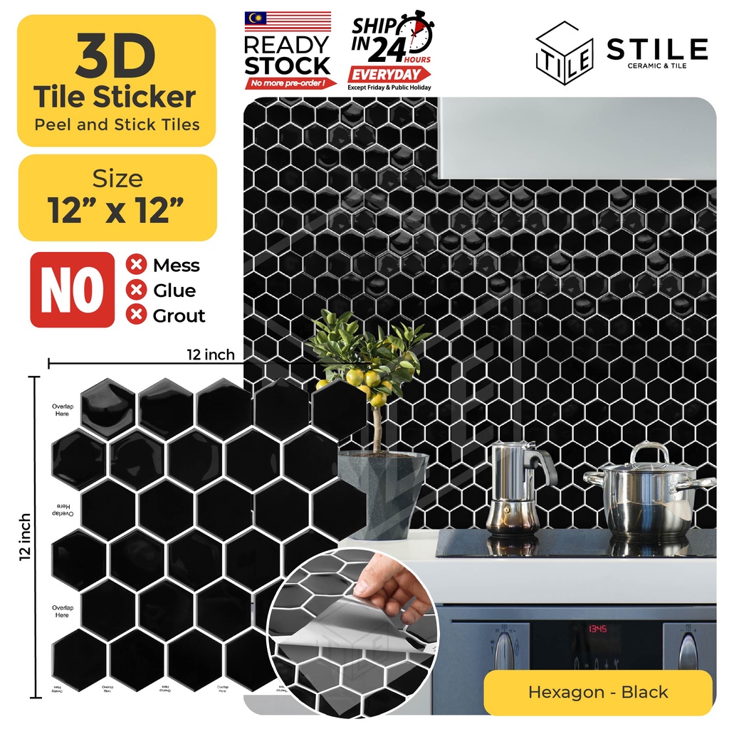 Hexagon Black 3D Tiles Sticker Kitchen Bathroom Wall Tiles Sticker Self Black Sticker Wall Tiles check out our black tile stickers selection for the very best in unique or custom, handmade pieces from our home & living shops. easy to use peel and stick on wall tiles for kitchens, bathrooms, worktops, tabletops and bedrooms. buy stick and go wall tiles at b&q free standard delivery on orders over £75. 100s of help. Black Sticker Wall Tiles.