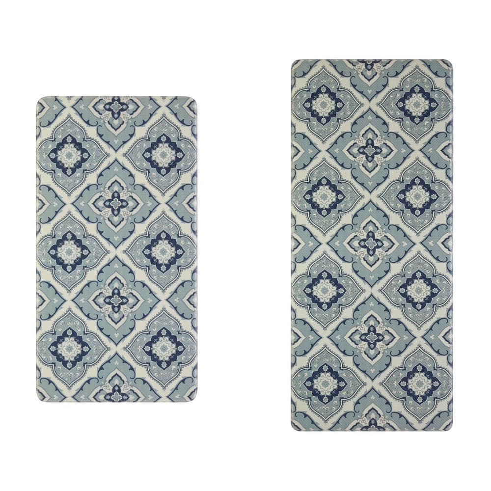 Laura Ashley Light Blue Medallion 17.5 in. x 48 in./17.5 in. x 28 in