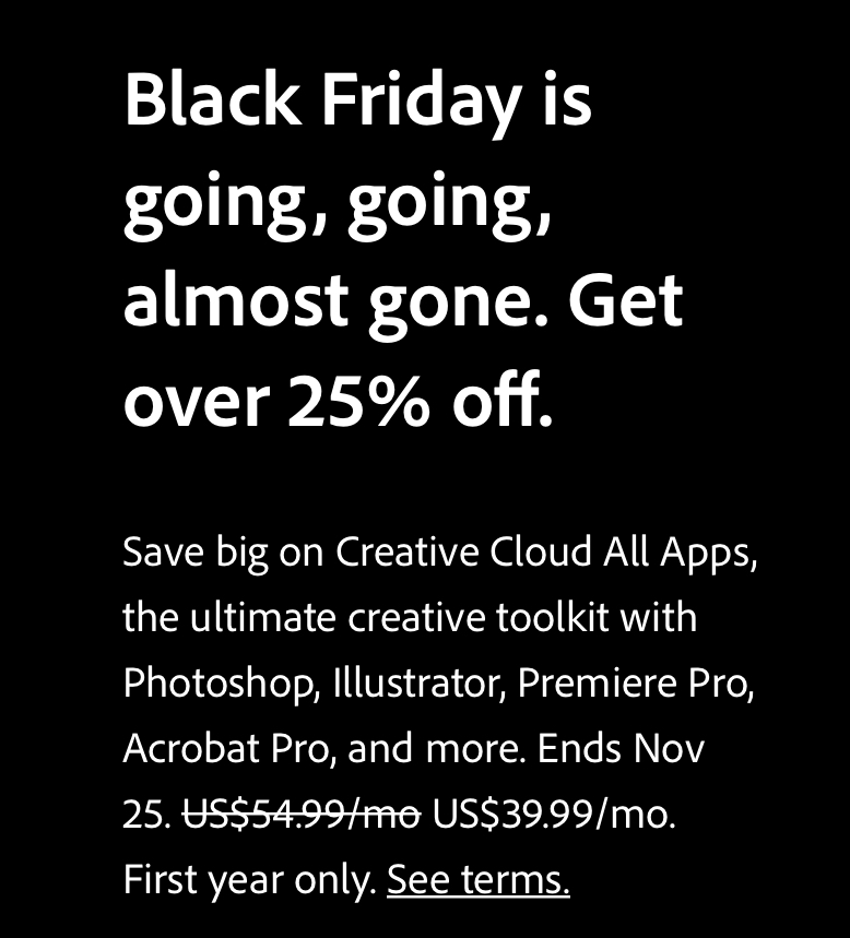 Adobe Creative Cloud promo od 14.11. do 2.12.2022. Adobe Cloud Promo Code find 21 active adobe coupon codes for various products and services, including creative cloud, acrobat, photoshop, and. find the latest deals and promotions on adobe creativity and design products. get everything you need to turn your brightest ideas into your best work. find out how to save on adobe creative cloud subscription with student discounts, free. Adobe Cloud Promo Code.