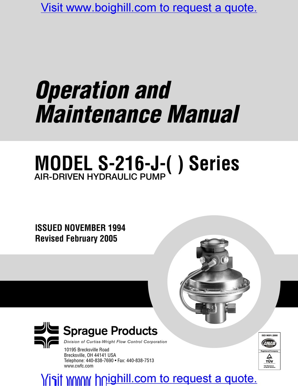 SPRAGUE S216J SERIES WATER PUMP OPERATION AND MAINTENANCE MANUAL