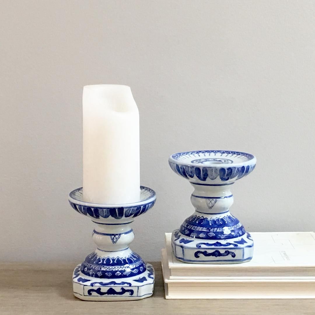 Pair Blue and White Pillar Candle Holders Chinoiserie Table Decor Mod Blue Pillar Candle Holders Add extra light and style with lanterns for indoors and outdoors. Check out our blue pillar candle holder selection for the very best in unique or custom, handmade pieces from our candles & home fragrances shops. Shop wayfair for all the best blue candle holders. Enjoy free shipping on most stuff, even big stuff. Blue 7'' h tabletop votive holder. Blue Pillar Candle Holders.