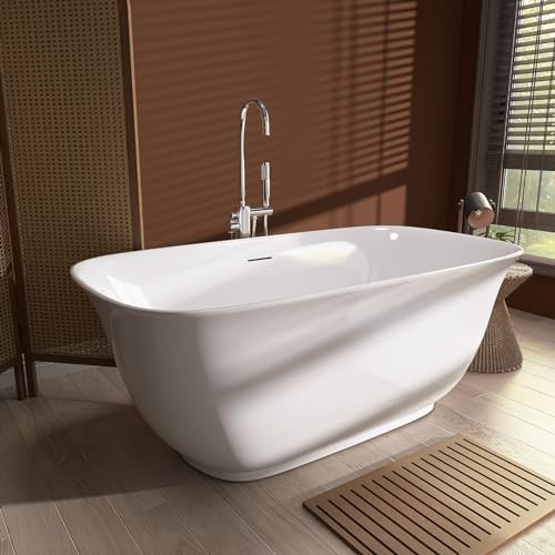 59“ Acrylic Free standing Tubs, Gracefully Shaped Heavy Duty Stand Alone Deep Soaking Bathtub
