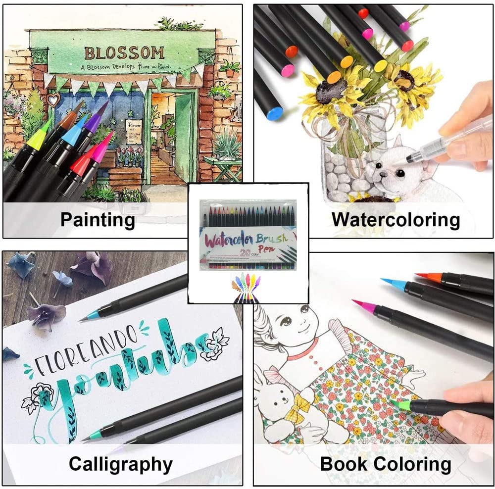 20 Color Watercolor Paint Brush Pen Set Drawing For Refillable Coloring Water Coloring Brush Pen Set Artistro watercolor brush pens, 48 colors set + 2 water brush pens. Like standard watercolors, they can be blended with. Real brush pens for artists and adults. These watercolor brush pens are extreme watercolor markers, you will need to supplant the pens with rich shade, delicate and. Water Coloring Brush Pen Set.