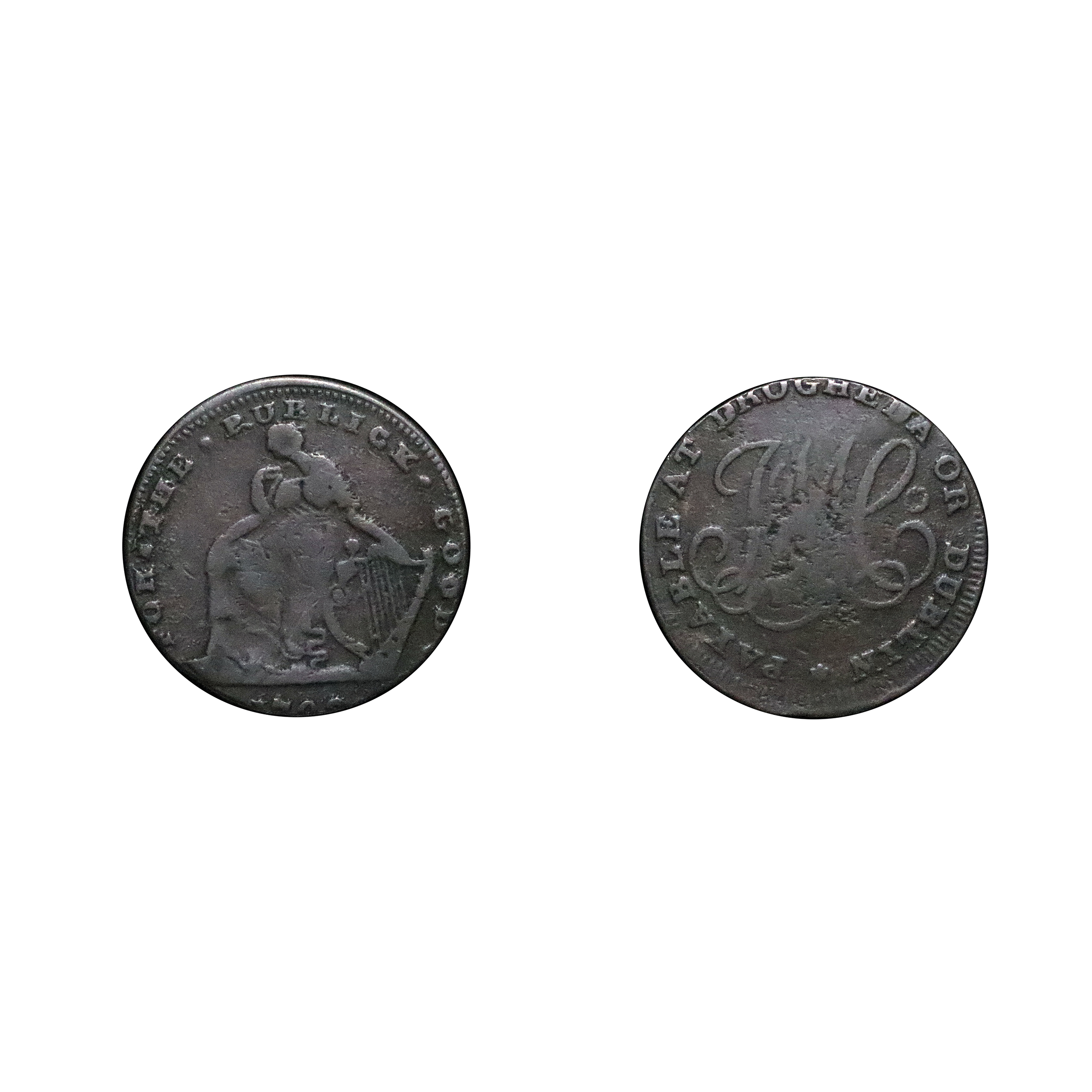 LOT 201 Drogheda Copper Halfpenny DH 1, Rare LAST DRUID