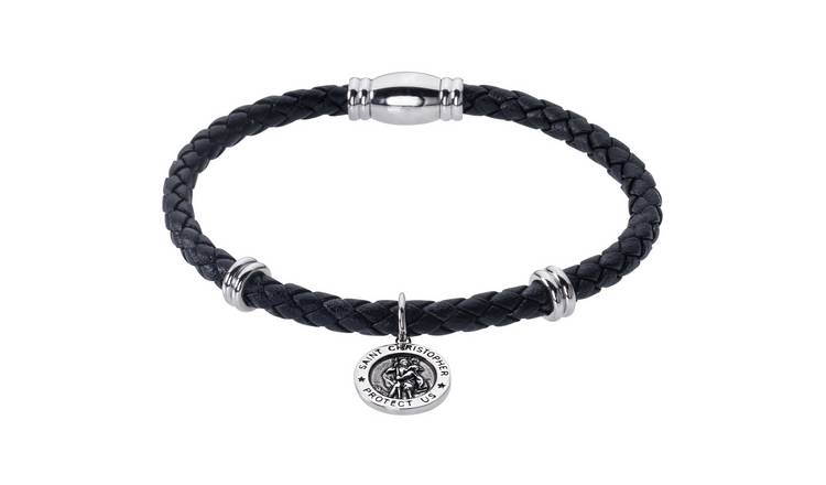 Buy Revere Men's Stainless Steel Leather St Christopher Bracelet Mens