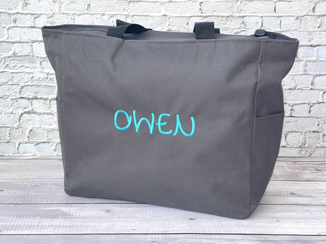 Gray Daycare Tote Bag, Personalized Tote Bag With Zipper, Kids Travel