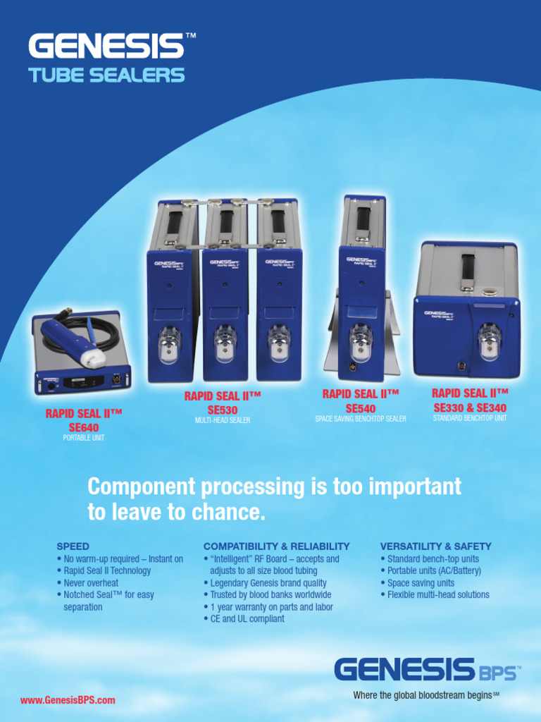 Genesis Model SE 530 BPS Rapid Seal II,Tube Sealer Genesis Sealer Designed for medium duty sealing. Genesis ensures a very high standard of. Notched seal™ for easy separation. Designed for medium duty sealing. • notched seal™ for easy. Genesis ensures a very high standard of. Slim design to maximize available space. Genesis ensures a very high standard of manufacturing quality,. Rapid seal ii™ seals in 0.5 to 1.2 seconds. Genesis Sealer.
