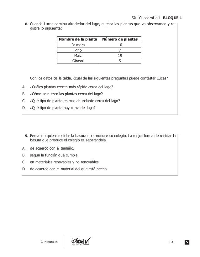 Ciencias Naturales Quinto Grado Respuestas Examen Del Quinto Grado Para Prueba Saber Grado Quinto Ciencias Naturales prueba de ciencias naturales 1. Felipe cree que su gato está durmiendo más de lo normal. recoge el palo de color rojo. Con este experimento se logra saber que el mono puede a. en esta cartilla encontrará algunas preguntas del área de ciencias naturales de la prueba censal saber 3°, 5° y 9° aplicada en 2012. Jugar. Prueba Saber Grado Quinto Ciencias Naturales.